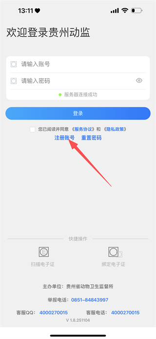 1、在贵州动监登录页,点击注册账号选项,进入注册页面。