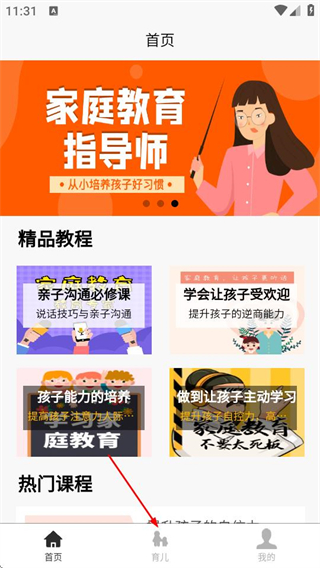 2、在育儿页面选择目标课程内容,进入对应课程列表页。