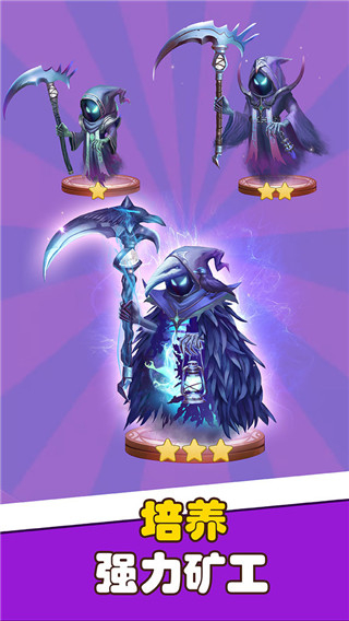 核心采用放置机制,离线状态下矿工仍会自动持续挖掘,回归后即可领取所有积累的资源与道具,无需实时操作,适配碎片化生活节奏。