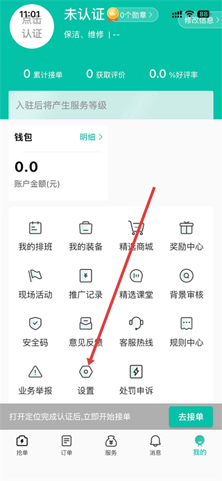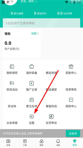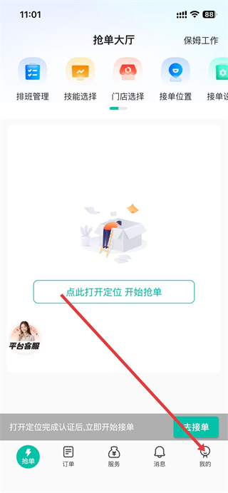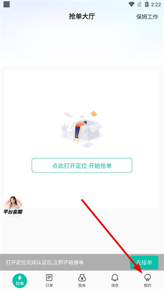1、打开58到家工作端app,点击底部导航栏我的选项,进入个人页面。
