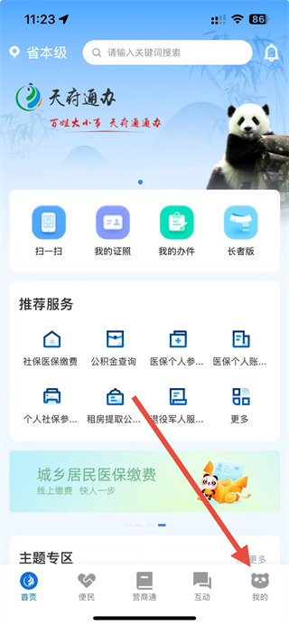 第一步.进入天府通办后,选择右下角“我的”,出现下图界面